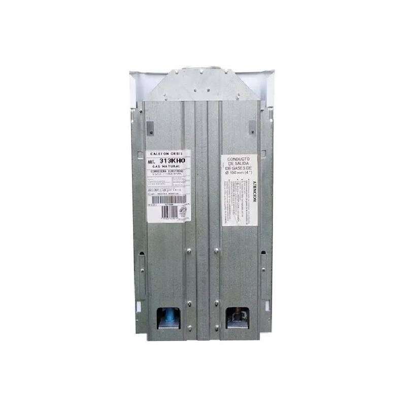 El Orbis 313 KHO es un calefón a gas de tiraje natural con una capacidad de 12 litros/minuto. Viene equipado con encendido manual y quemadores principales con difusores de acero punzonado de alta precisión y conjunto piloto en acero inoxidable.